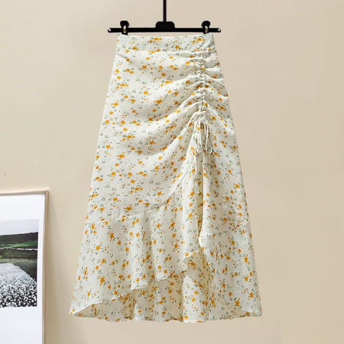 This elegant set features a square collar pure color t-shirt paired with a vibrant floral print skirt. Perfect for adding a touch of sophistication and femininity to any outfit. Upgrade your wardrobe with this versatile and stylish set.