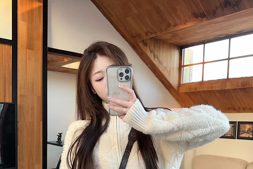 Stand Collar Embroidered Zip-Up Cardigan / Drawstring Waist Plain Wide Leg Pants