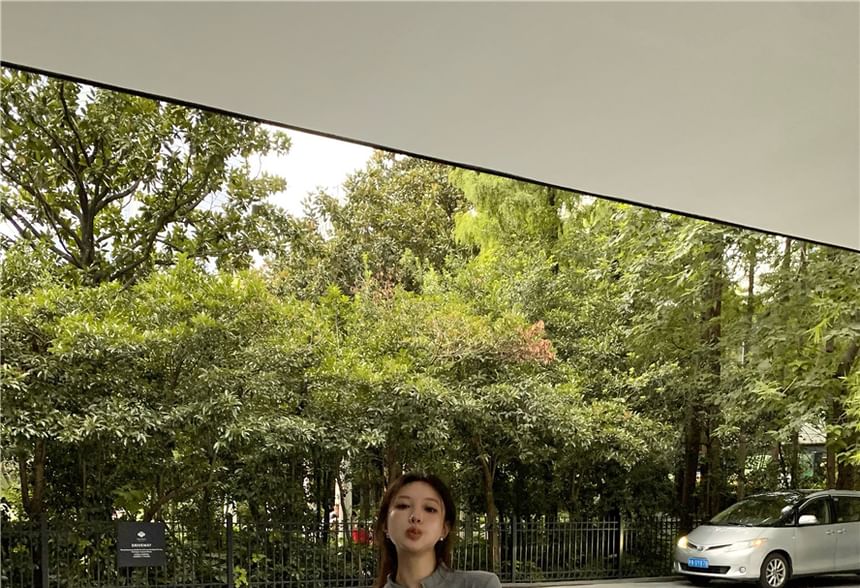 Stand Collar Plain Slim Fit Zip-Up Jacket / High Waist Maxi A-Line Skirt