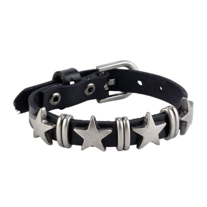 Add a touch of elegance to your outfit with our Star Leather Bracelet. Made with premium leather, it features a delicate star design that will elevate any look. Perfect for any occasion, this bracelet is a must-have accessory for any fashion-forward individual.