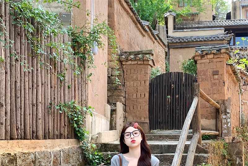 Strap Cardigan Melange Crop Mini Spaghetti Dress A-Line Floral /