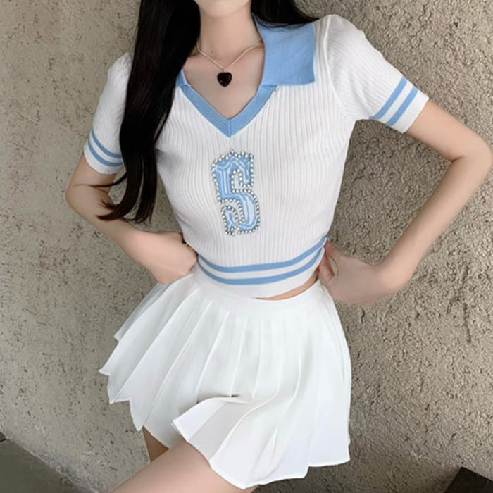 Sweet Letter Print Colorblock T-Shirt Pleated Skirt