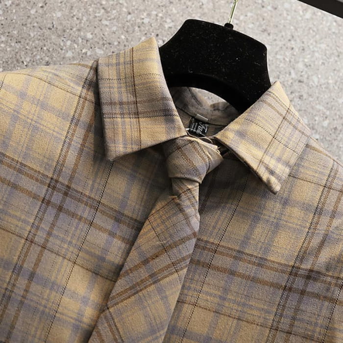 Transform your daily look with this elegant Vintage Knitted Vest Plaid Dress Set. Embrace the timeless charm and sophistication of this cozy knitted vest paired with a stylish plaid dress. Perfect for any occasion, this set will elevate your style and make you stand out in the most elegant way.