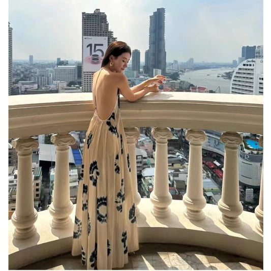 Maxi robe dos nu à bretelles spaghetti et teinture par nouage