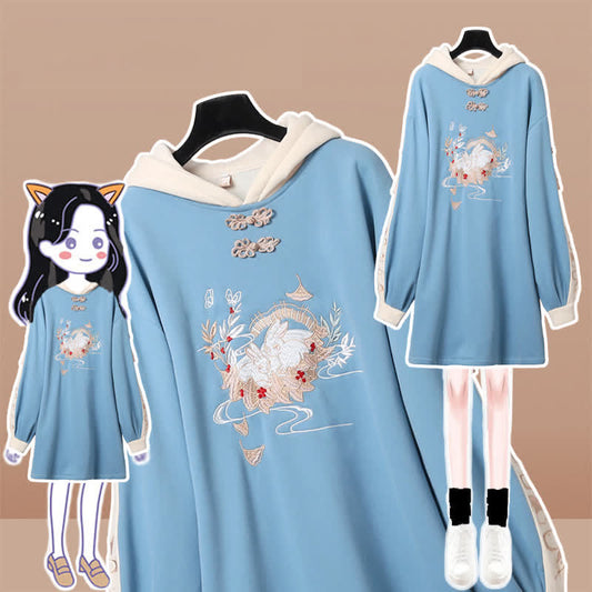 Robe sweat-shirt à capuche en peluche colorblock motif lapin vintage