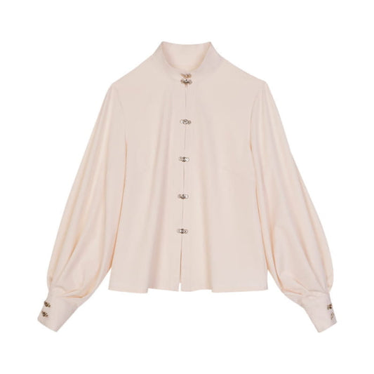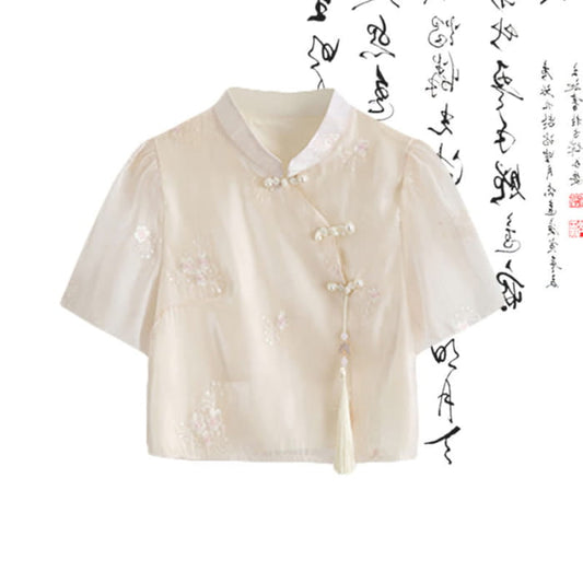 Chemise vintage brodée à pompons et boucle - Jupe plissée taille haute