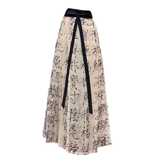 Jupe Hanfu plissée à lacets avec imprimé de personnages vintage