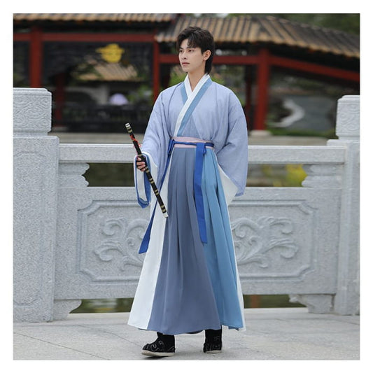 Chemisier Hanfu à blocs de couleurs / Chemisier à pois / Maxi taille haute