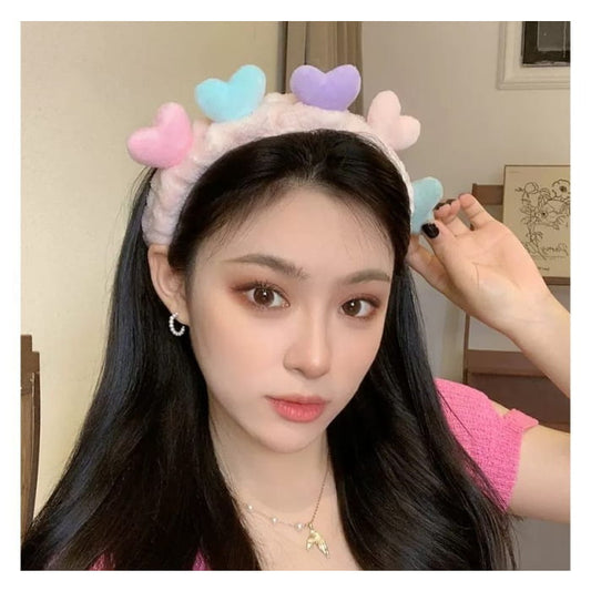 Bandeau nettoyant pour le visage en peluche avec motif cœur et blocs de couleurs