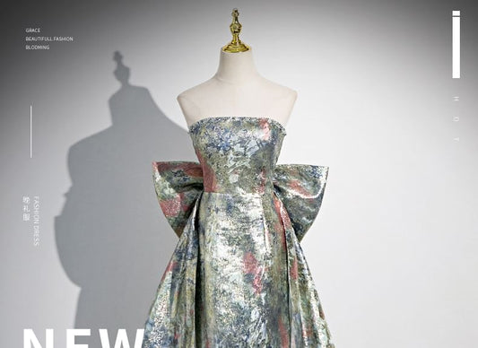 Floral Strapless Evening Back Print Gown Bow A-Line