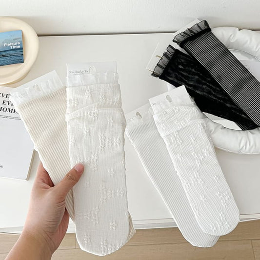 Chaussettes fleuries / Chaussettes unies à nœud / Ensemble