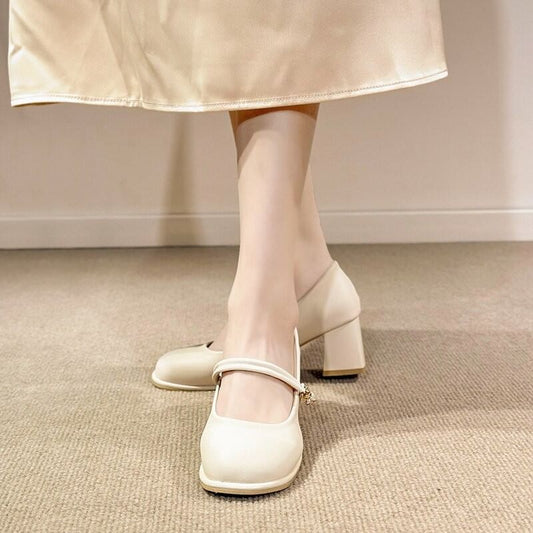 Jane Faux Mary Toe Strap Adhesive Round Leather Shoes