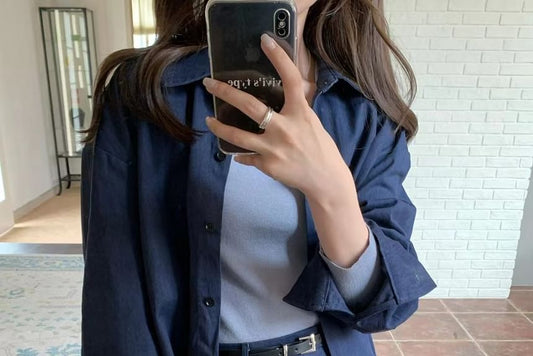 Long Sleeve Collared Plain Shirt / High Waist Maxi A-Line Skirt