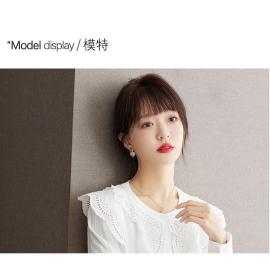 Chemisier à manches longues et col rond en dentelle brodée
