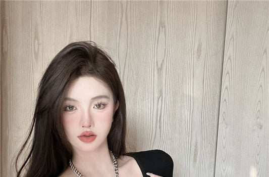 Long-Sleeve Halter Neck Mock Two-Piece Plain Slim Fit Crop Tee