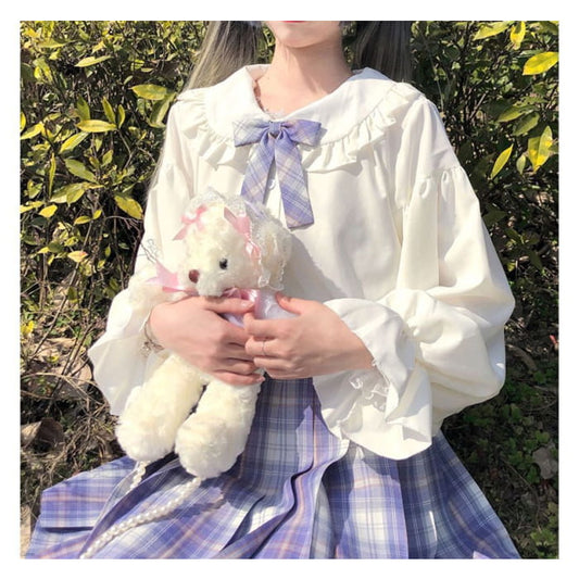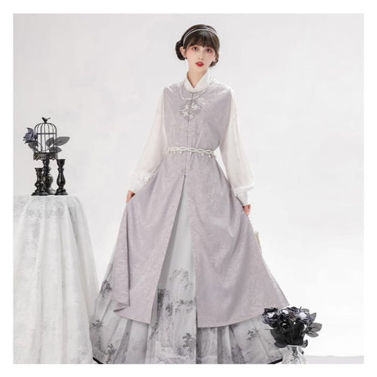 Haut Hanfu à manches longues à imprimé floral / Ornement d'ours / Châle