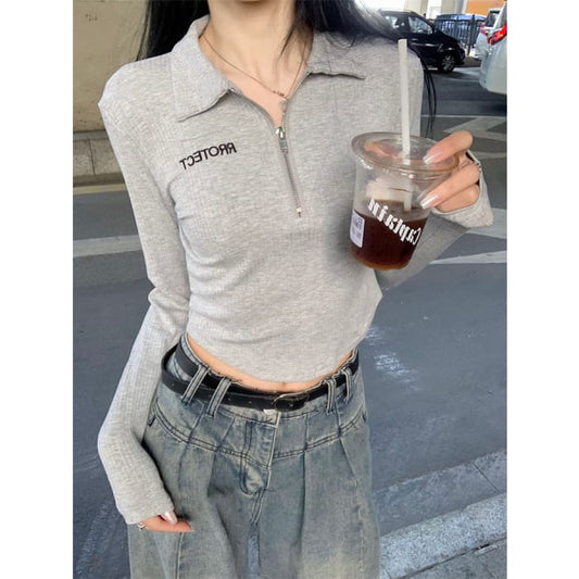 Polo court à manches longues et demi-fermeture éclair avec inscription