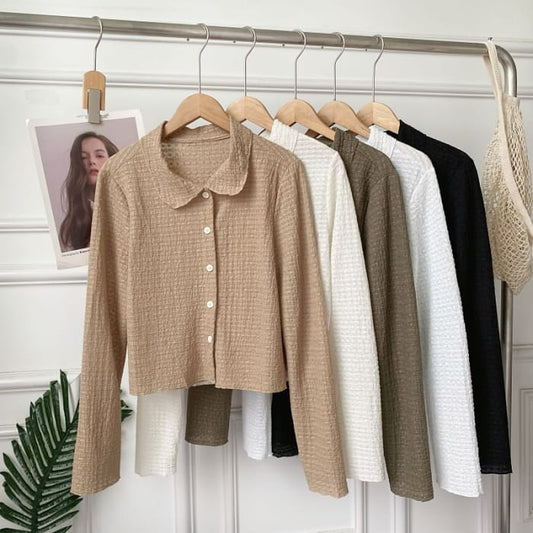 Chemisier boutonné uni à manches longues et fronces