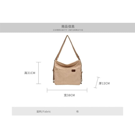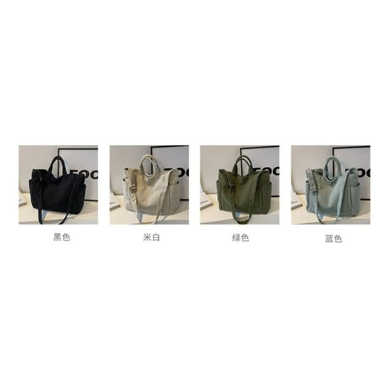 Sac à bandoulière en velours côtelé uni avec poignée supérieure