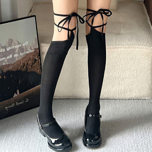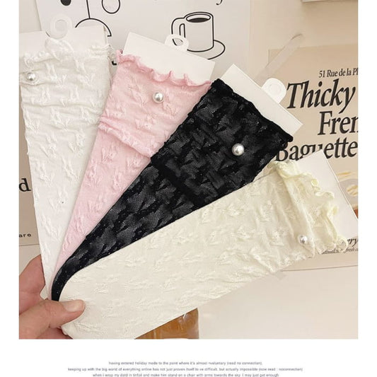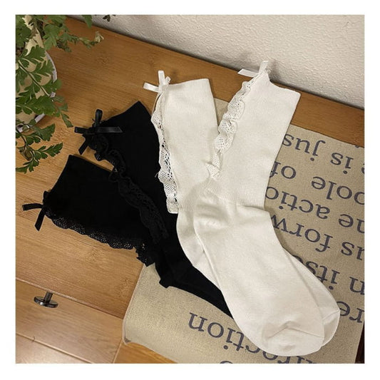 Chaussettes unies en dentelle à volants et nœuds / Ensemble
