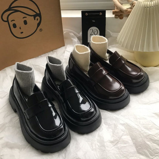 Plain Platform Chunky-Heel Lace-Up Shoes