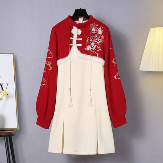 Robe Cheongsam à nœud et gilet à boucle à fleurs rouges