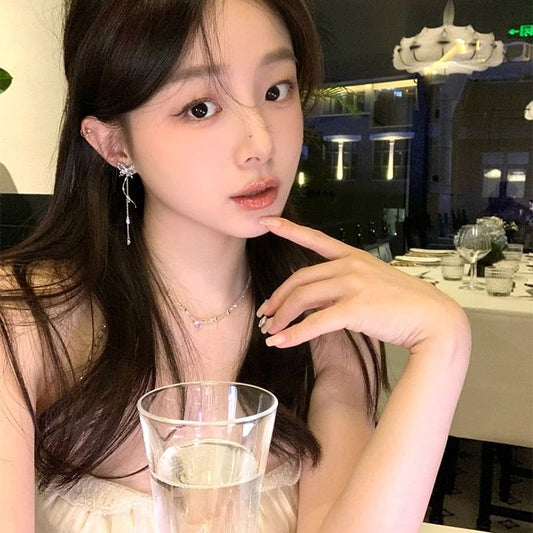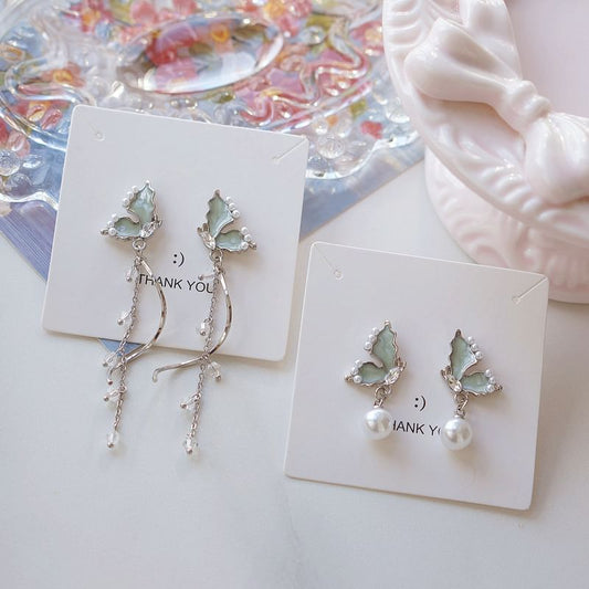 Pearl Butterfly Drop Rhinestone Earring Faux