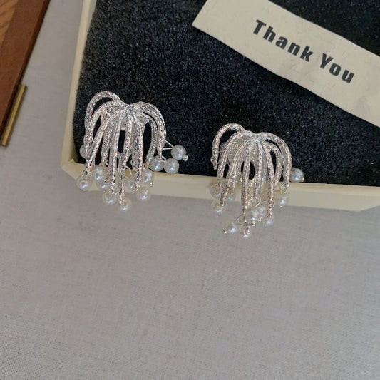 Dangle Earring Alloy Pearl Branches Faux Geometric