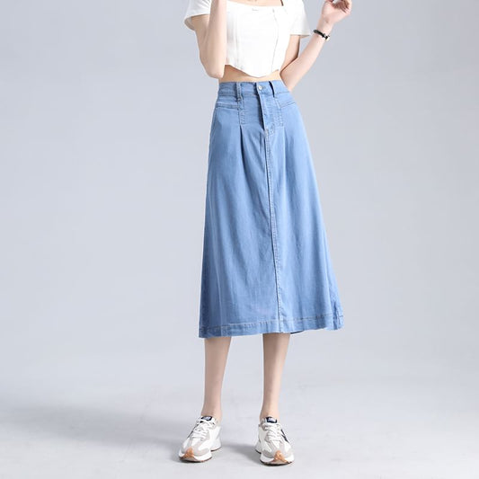 Panel A-Line Lace Skirt Rise Satin Midi High