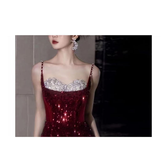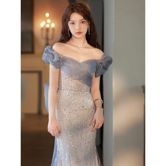 Robe de cocktail/robe de soirée à paillettes et épaules dénudées