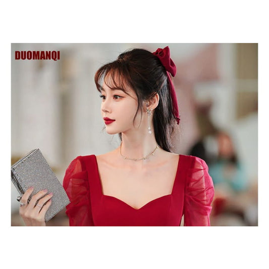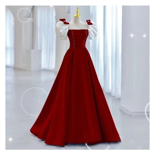 Robe de soirée trapèze à manches bouffantes et nœud bicolore