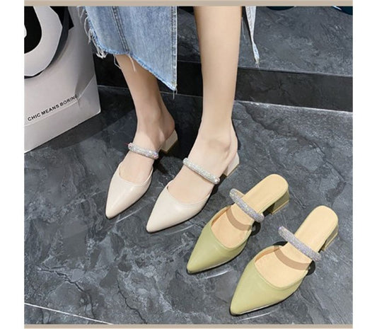 Slingback Sandals Chunky Heel Rhinestone Pointed