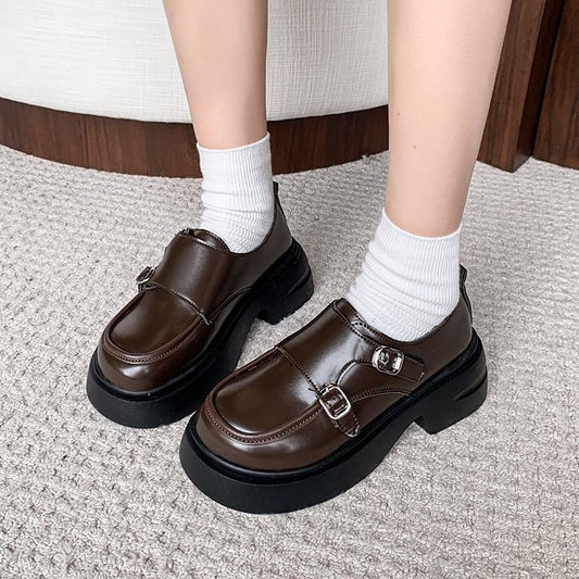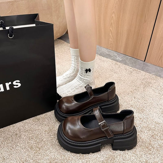 Heel Jane Platform Square-Toe Shoes Chunky Mary