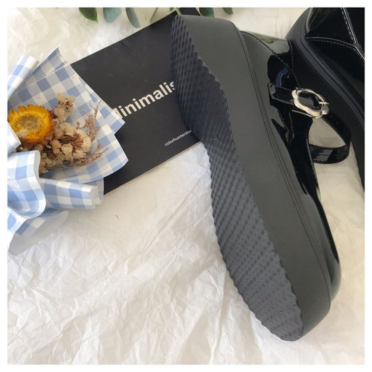 Platform Flower Buckle Patent Leather Mary Jane Shoes