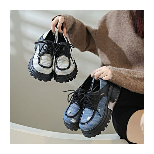 Chaussures Derby à talons épais et plateformes à lacets à motifs vieillis