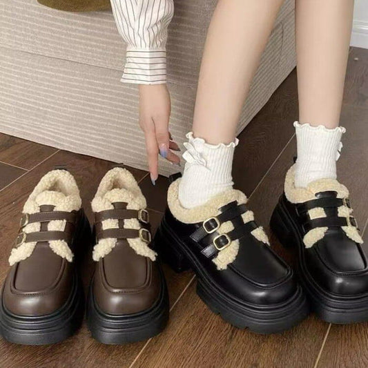 Chaussures Mary Jane à talon épais et semelle compensée doublées de polaire