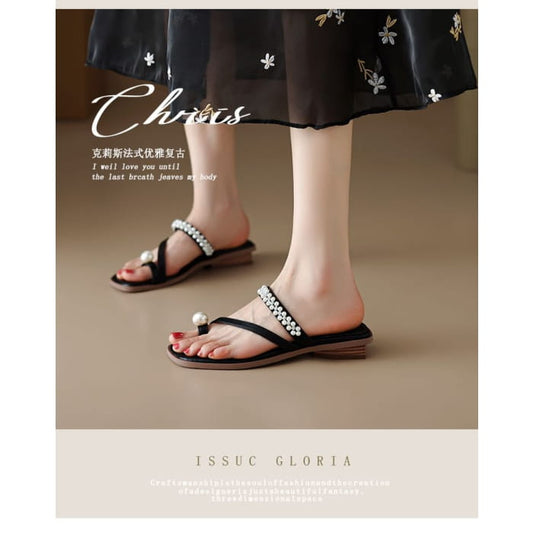 Sandales à enfiler avec boucle d'orteil en fausses perles