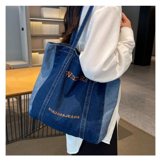 Sac fourre-tout en denim délavé avec lettrage / Charm / Set