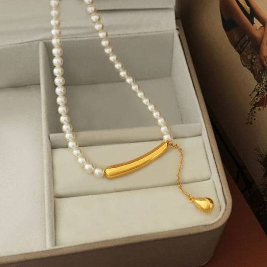 Collier avec pendentif en forme de goutte d'eau et fausses perles