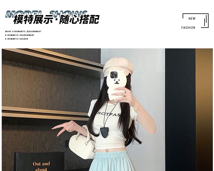 A-Line Plain Skirt Lace High Waist Trim Maxi