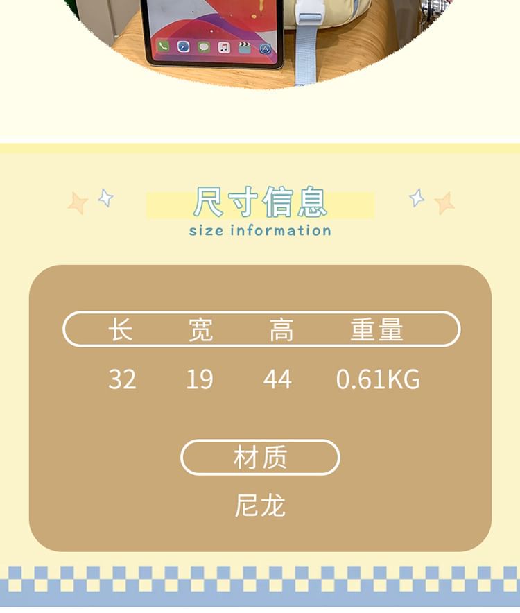 Backpack Buckled Lettering Charm Bag / Applique Set Nylon