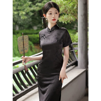 Rehaussez votre style avec notre élégant Cheongsam classique noir Embodies. Cette pièce intemporelle respire la sophistication et la grâce, parfaite pour toutes les occasions. Avec son design noir élégant, il combine sans effort des éléments traditionnels et modernes. Faites une déclaration et embrassez la beauté de la tradition avec notre Cheongsam.