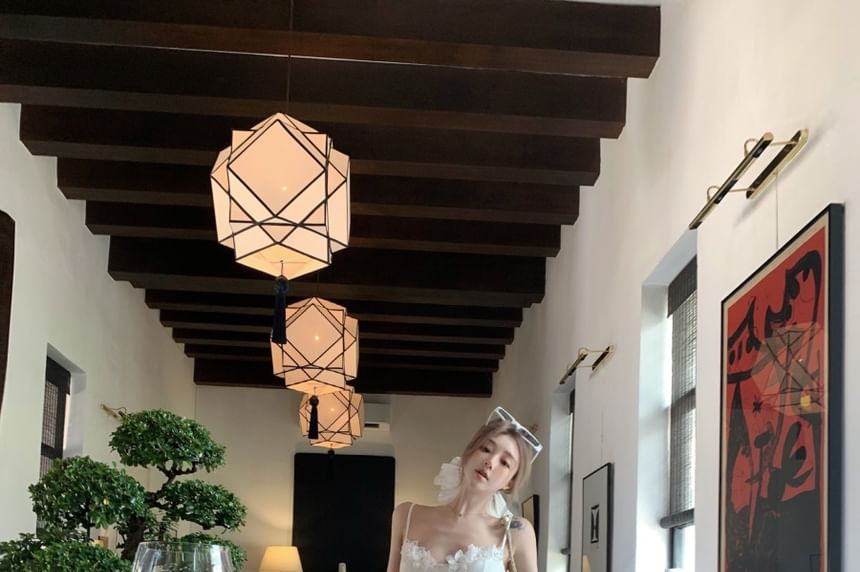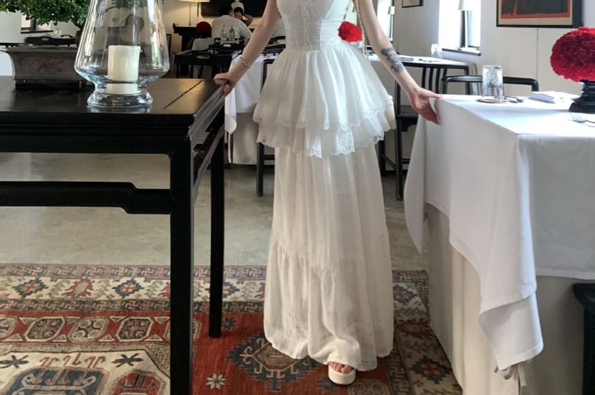 Camisole Peplum / Plain Skirt High Trim Maxi Top Lace Waist A-Line