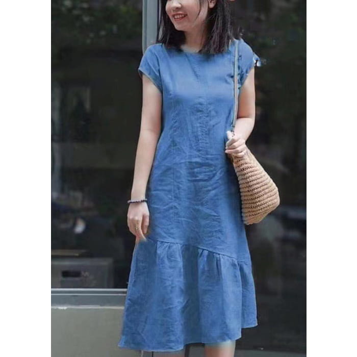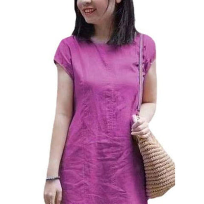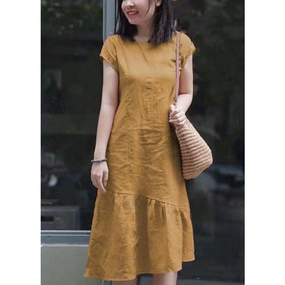 Robe mi-longue asymétrique rouge à manches courtes en patchwork DIY VB1039