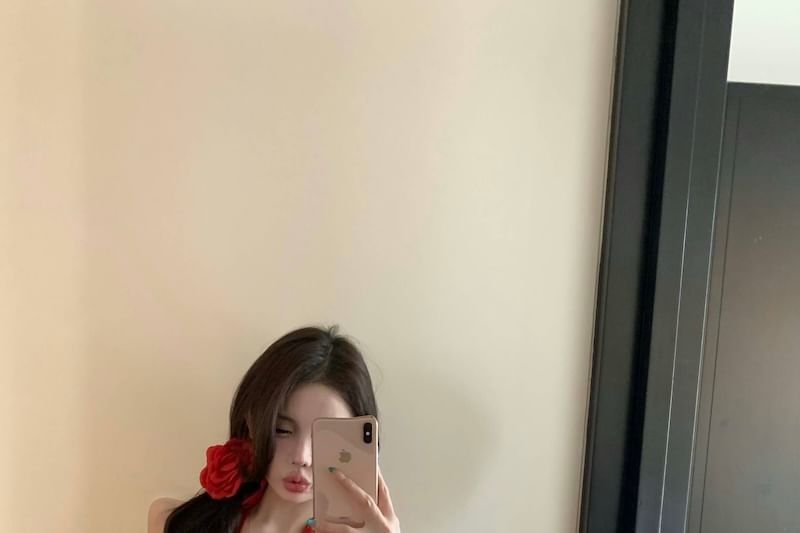 Dotted Top Hem Halter-Neck Plain Ruffle