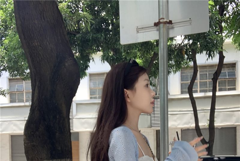 Dress A-Line / Spaghetti Ruffle Mini Print Floral Pointelle Cardigan Plain Strap