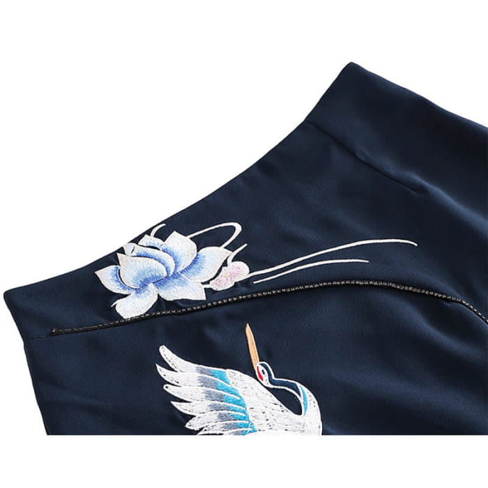 Cet ensemble élégant se compose d'une superbe chemise à pampilles fleuries et d'une superbe jupe à imprimé oiseaux. Parfait pour un look sophistiqué qui fera sensation.