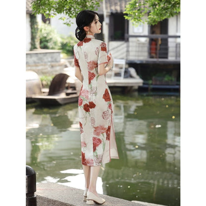 Robe élégante cheongsam à imprimé rose