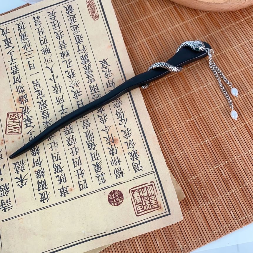 Snake Faux Pearl Fringed Hair Stick