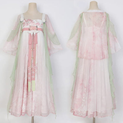Libérez votre élégance avec notre costume Hanfu en maille florale. Cette superbe robe est un mélange parfait de vêtements traditionnels chinois et de design moderne, avec un délicat motif en maille florale. Embrassez votre féminité intérieure avec ce costume élégant. Parfait pour les occasions spéciales, les séances photo et les événements culturels.